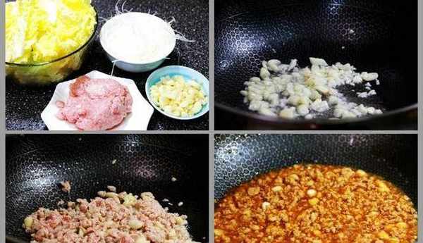【準備原料】:肉餡150g、娃娃菜半顆、粉絲1把、大蒜、食用油、生抽醬油、鹽;