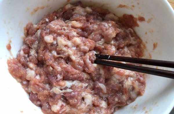 3、接著肉餡裡面加入適量的蔥薑水,蠔油,鹽和胡椒粉攪拌均勻之後備用,記住,肉餡在攪拌的時候,要順著一個方向攪拌均勻,這樣肉餡才會上勁,容易抱團。