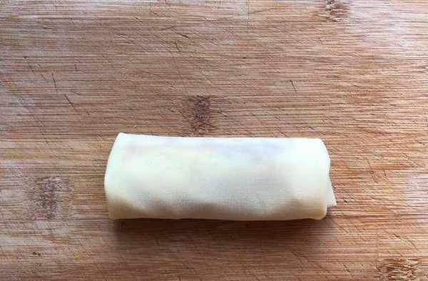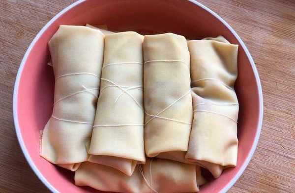 5、像是卷餅一樣,把肉餡包裹在百葉中間。