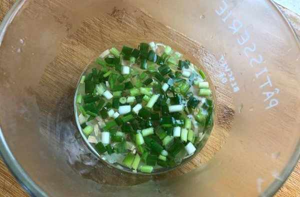 2、蔥薑加入少量的水和鹽,攪拌均勻,做成蔥薑水,一會加入到肉餡裡面調味,去腥增香的效果相當不錯。