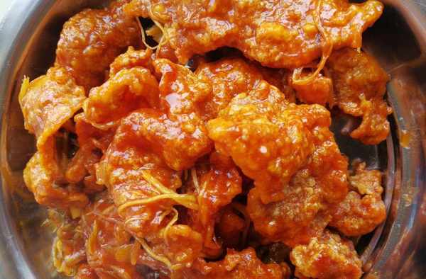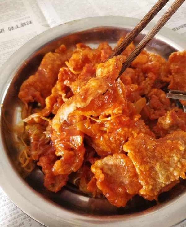 做法:裡脊肉切薄片、醃制、掛糊炸、蔥薑蒜熗鍋,加番茄醬炒甜酸汁兒,炸好的肉片翻炒掛勻甜酸汁兒出鍋裝盤。