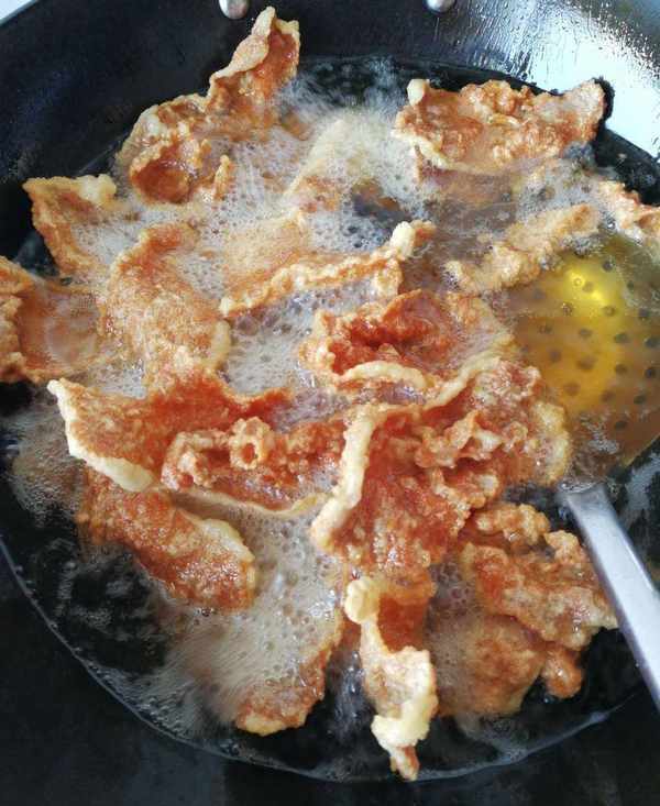 寬油燒八成熱,將肉片展開逐一下鍋炸