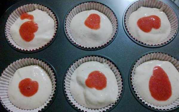 把面糊用勺子,舀到紙杯中八分滿。烤箱175度25分。