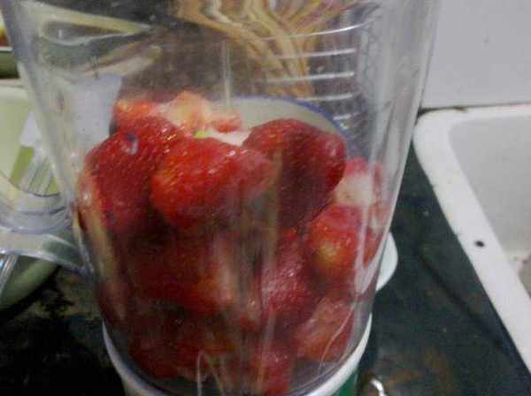 草莓放入料理機打成泥狀。蛋清和蛋黃分開