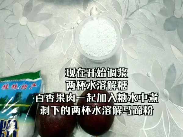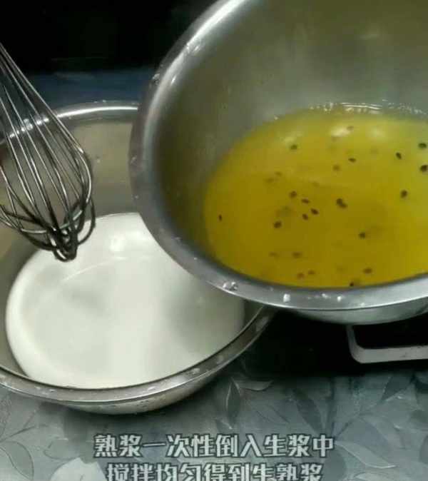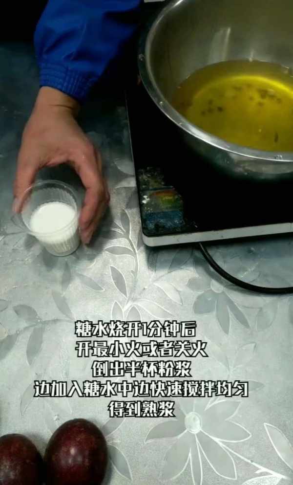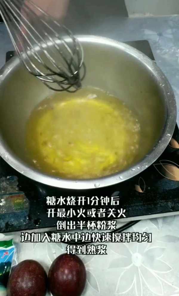 糖水熟漿=2杯水+1糖+半杯百香果+煮沸;