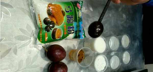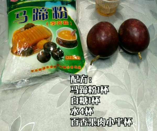 百香果糕配方:馬蹄粉一次性杯子1杯、白糖一次性杯子1杯、水一次性杯子4杯,百香果果肉一次性杯子半杯