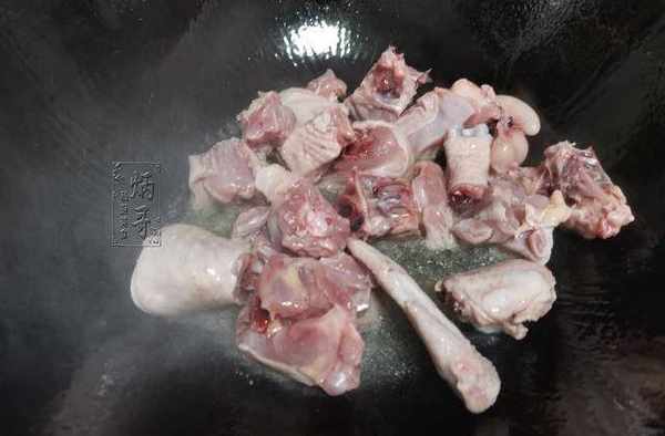2、將我們這次要用到的食材都準備好瞭之後,就可以開始起鍋熱油瞭。取出傢中常用的幹凈炒鍋,往鍋裡加入適量的食用油,隨後開大火候將鍋內的油溫持續加熱至六成左右的時候,就把之前切好的雞肉下鍋煸炒。