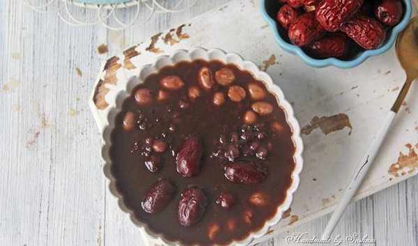 紅棗50克、花生50克、甘汁園純正紅糖適量、紫米50克、紅豆50克