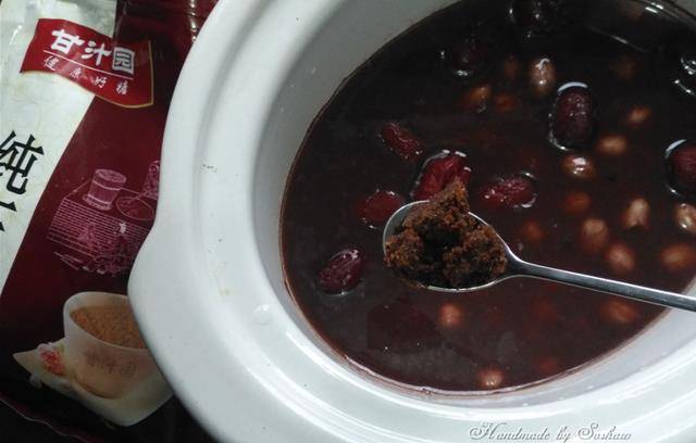 3、加入紅糖,煮到紅糖融化,即可開吃。