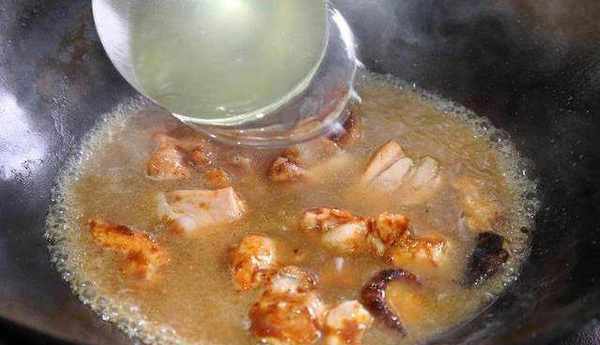 Step3:炒出香氣後加入雞高湯,再陸續放入油豆腐、扁尖筍、竹筍塊與泡好的冬粉。