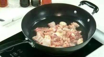 鍋內留少許油,倒入八角、薑片、花椒,爆香後加入蔥段、白糖、番茄醬,接著倒入生抽,翻炒均勻,炒香後將雞肉加入翻炒,炒香後加入適量清水漫過雞肉,蓋上鍋蓋燉煮。