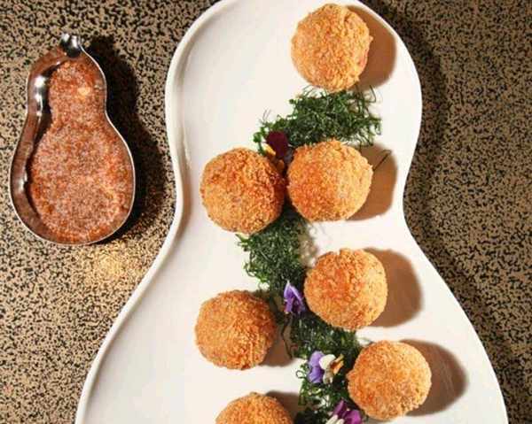 肉丸擺盤,跟一碟辣椒鹽上桌即可