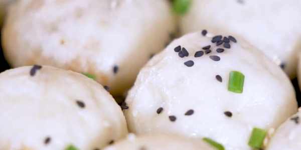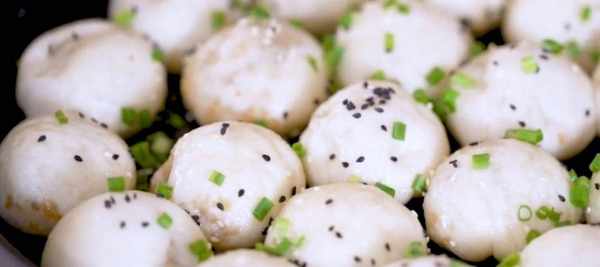 出鍋前,往包子上面撒點熟芝麻,再撒點蔥花,爆汁包子就這樣簡單做好瞭。