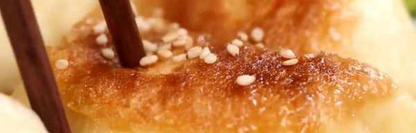 【步驟六】鍋裡淋入適量食用油,把包好的包子放入鍋中,煎到包子有明顯香氣後,可以看一下,包子煎得差不多瞭,就可以倒入水淀粉至包子的二分之一處,沿著鍋邊倒下去,蓋上蓋子燜一會兒,大概十分鐘左右,聽到劈裡啪啦的聲音,就是差不多瞭,再關火等半分鐘就可以出鍋瞭。