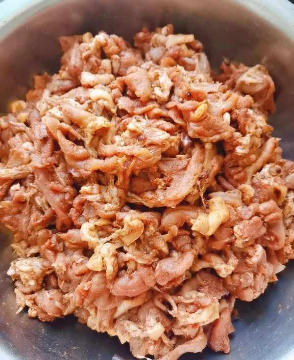 1.豬肉(三肥七瘦)去皮,洗凈,晾幹水分。