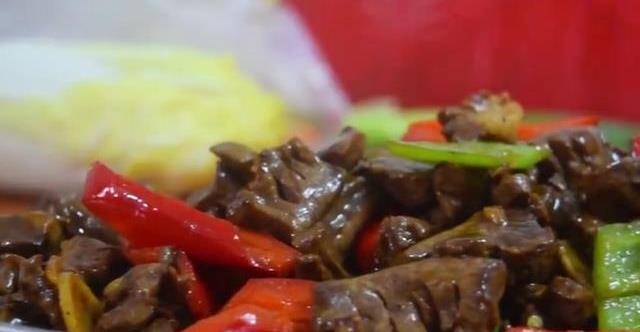醃制一會兒備用。接著把青紅椒去蒂。我們看一下切成小塊備用。再切點薑蔥蒜可以用。玻璃加入清水,豬心冷水下鍋,加入薑片、料酒、抄好水撈起備用,不用加油,燒熱,放入蔥薑蒜炒香。倒入豬心翻炒均勻,再加入蠔油料酒,大概青紅椒塊翻、炒斷生。沒有水淀粉,翻炒均勻後裝盤。這樣一道美味下飯的爆炒豬心就制作完成瞭,