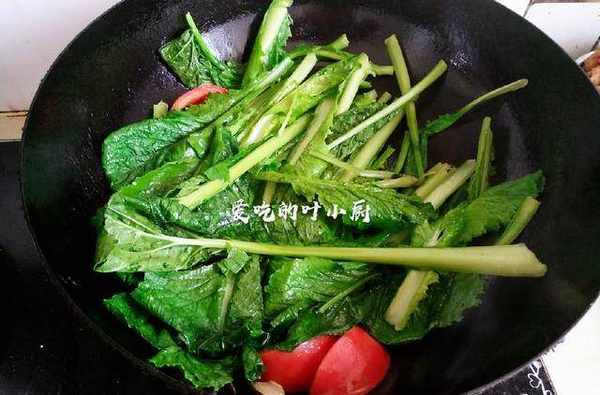 3.鍋中燒油,油熱後把蔥花放入鍋中炒出香味,然後把西紅柿和小白菜放入鍋裡翻炒。