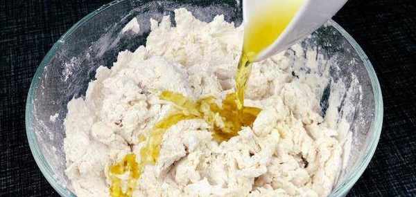 3.溫水120毫升先把酵母粉化開一邊倒,一邊攪拌,攪成棉絮狀,我們加入食用油約20克。