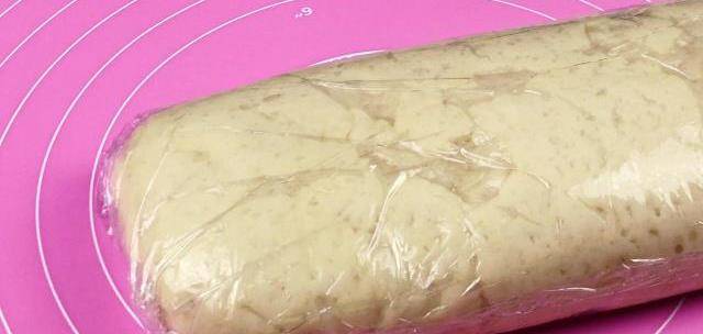 5.用保鮮膜像這樣包裹緊實一些,一定要盡量包裹嚴實,防止面發酵的時候擠出來。然後再放入冰箱冷藏醒發一晚,這樣長時間的低溫醒發,能夠使面筋自然形成,這樣做出來的油條會更加蓬松有嚼勁。