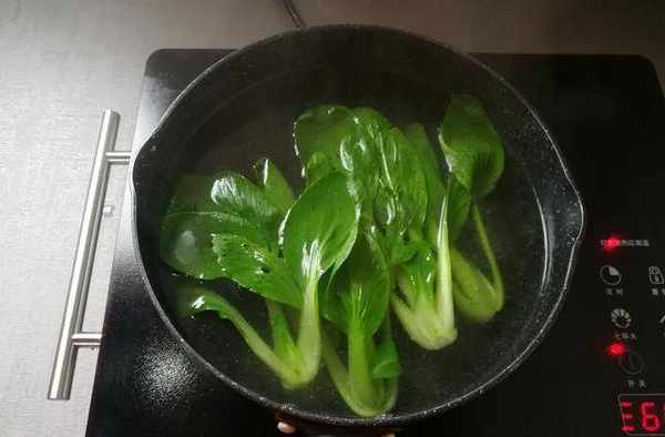 燒一鍋熱開水,放入幾滴食用油,放入上海青焯水斷生撈出來過涼水。這樣可以讓上海青保持碧綠的顏色。