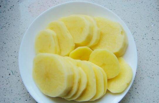 第一步:將土豆切片放入鍋中隔水蒸熟。