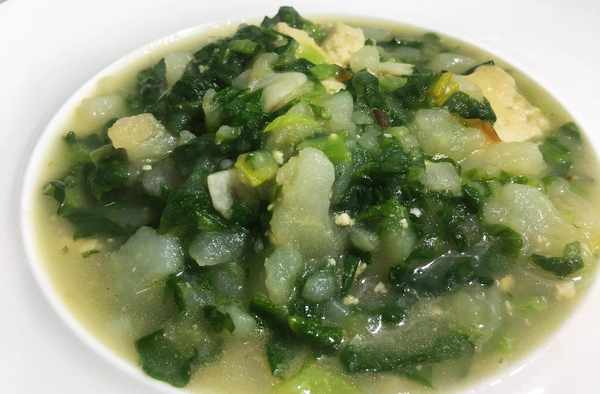 ⑨:把做好的小白菜燴豆腐盛到碗裡或是深一點的碟子裡,根據自己的口味再加點油潑辣子,營養又美味,真解饞。
