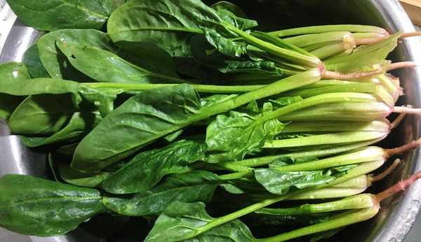 ③:菠菜摘掉根部後淘洗幹凈,用手揪成中長段,也放入開水鍋裡,焯水1分鐘後撈出到涼水盆裡,再用手攥幹水分,再切點蔥段和蒜片就可以上鍋炒瞭。