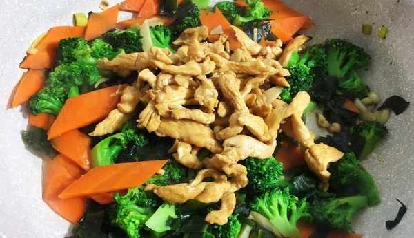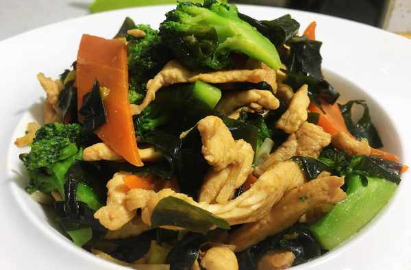 【所需食材】:西藍花、裙帶菜、雞胸肉、胡蘿卜、蔥薑蒜、食用油或橄欖油、食鹽、生抽、老抽、料酒、胡椒粉、十三香、雞汁