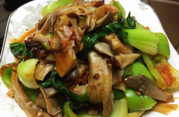 【所需食材】:蘑菇、小油菜、西紅柿、蔥蒜、幹紅辣椒、食用油、食鹽、生抽、十三香、花椒粉、雞汁