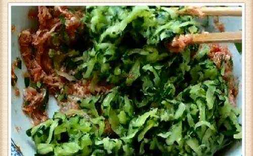 3.給餡料調味時,鹽不需要放多瞭,因為黃瓜裡已經有鹽,我們隻需要調肉餡的鹽就可以,