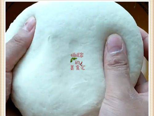 【第四步】:案板上抹少許食用油,然後把面團取出,切成長條,下12個面劑,面劑下的小一些,這樣子更加容易烙熟,把每一個面劑搓圓按扁,接下來在面劑上面撒些幹面粉,搟成中間稍厚邊緣稍薄的面餅,然後再把肉餡放進去,