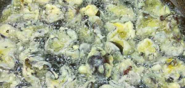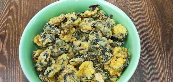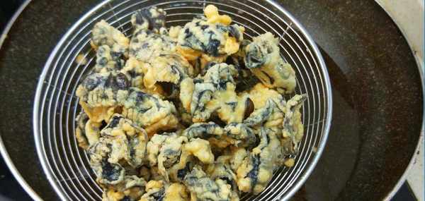 5、油溫5層熱下鍋炸,炸至的過程中,油溫要盡量控制在5成熱,如果油溫升高,炸的木耳會出現爆開的現象,膽小的小夥伴可能會害怕