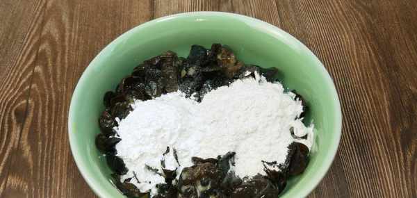(100克木耳、2個笨雞蛋、40克淀粉、40克面粉、1勺鹽、適量燒烤料)