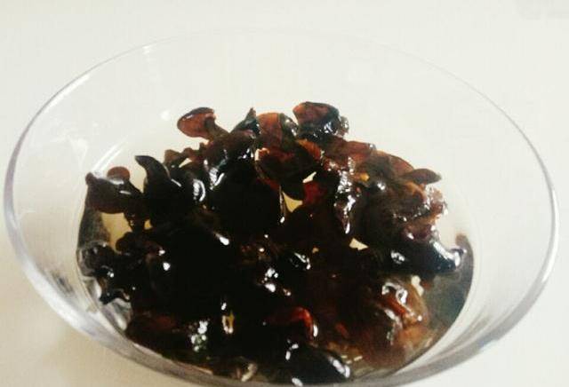 1.黑木耳提前一個小時用溫水泡發,泡好的黑木耳呈半透明狀;然後搓洗幹凈裡面的細沙,用手撕成小朵;