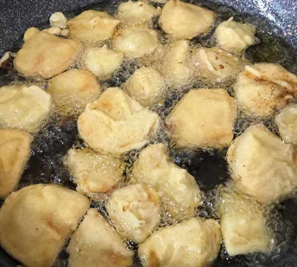 年三十的上午,甚至說臘月二十九的晚上,基本上傢傢都是在炸炸貨。包括地瓜盒在內的炸貨,一炸就要炸夠吃到元宵節的。