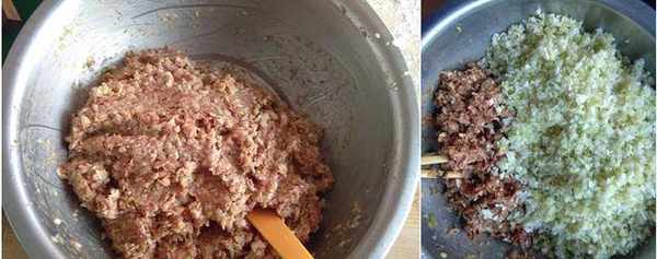4將肉放進盆裡,加入油、鹽、蠔油、味極鮮適量,蔥、薑末一起攪拌均勻。5把剁好多白菜加入肉餡裡,攪拌均勻備用。