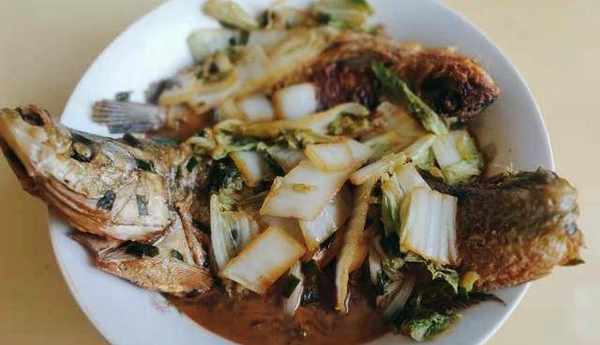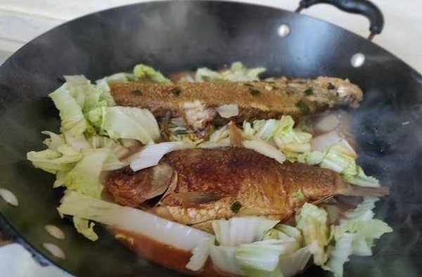 主要食材:野生魚2條,白菜葉3張。
