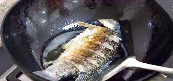 2. 我們需要在鍋裡面倒入適量的食用油,開大火燒熱之後,等到油溫5成熱這個時候,也就可以把我們剛才已經醃制過的魚肉放入裡面稍微煎一下,兩邊都需要煎一下,這樣煎的目的是為瞭讓魚皮在燉煮的過程中不容易被燉爛。