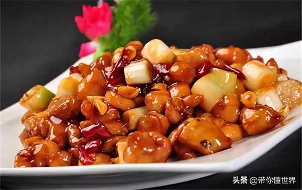 提起川菜,怎能少得瞭宮保雞丁,這菜是由光緒年間的進士丁寶楨創制的,因其平日喜食雞肉和花生米,後將雞丁,幹辣椒,花生米等炒制而成,入口後不僅有雞肉的鮮嫩,還有花生的香脆,口味鮮辣飽滿,後來越傳越廣,在很多地方幾乎是成瞭川菜的代名詞。