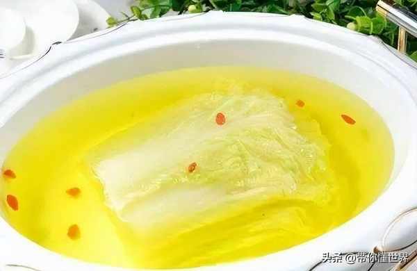 開水白菜以白菜為主料,加高湯調味的名菜。別看外觀看著很寡淡,但味道真不錯。白菜音同“百財”,也是年夜飯的一道吉祥菜。