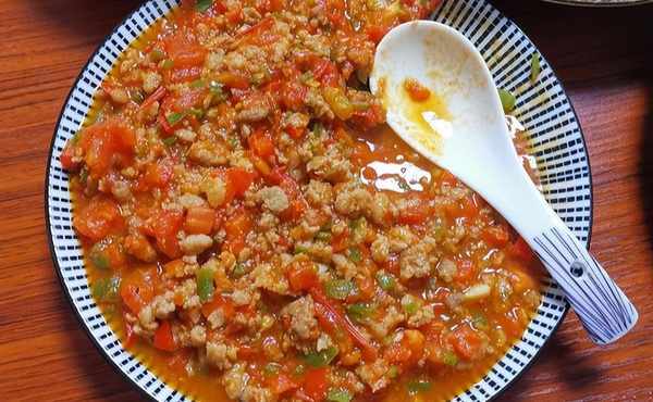西紅柿2個、蒜3~4瓣、豬肉250克、紅辣椒1個、綠辣椒適量。
