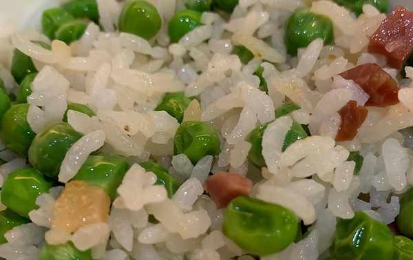 豌豆500克、米飯1000克(左右)、火腿150克。