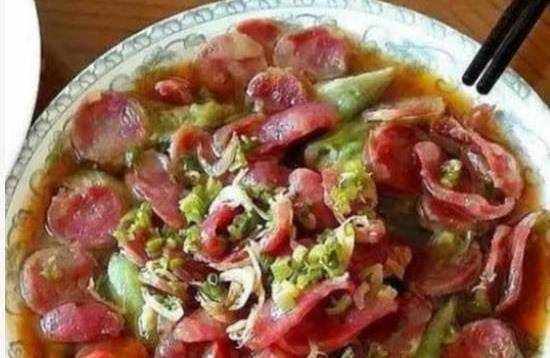 配料:絲瓜2,香腸1,醬油2匙,食用油1勺