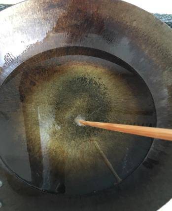 把筷子放到油鍋,會有氣泡少量氣泡產生。3.七成熱時