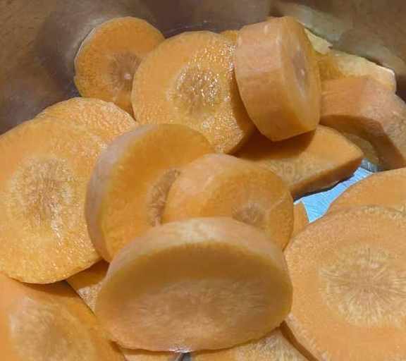 胡蘿蔔削去表皮,用清水沖洗乾淨,切成小塊狀。