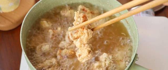 鍋中倒油,等到油燒好後,把排骨粘上淀粉放油中炸至金黃色就可以啦(炸排骨的燒好要小火炸,不要容易糊掉)