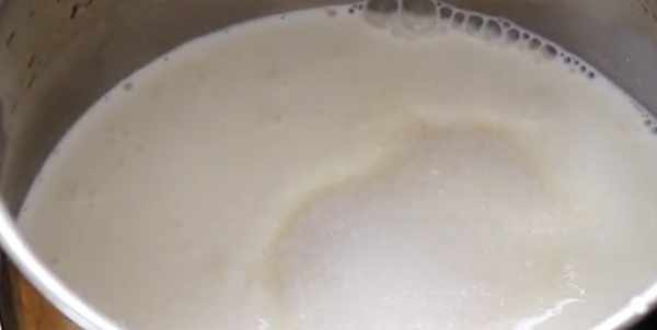 1.將所有的食材都準備好,準備一口奶鍋,先把純牛奶倒入奶鍋裡面。接著再把淡忌廉和白砂糖一起倒入奶鍋裡面,開最小火,慢慢煮。一邊煮一邊攪拌,防止糊鍋,不需要把牛奶煮開,只需要把白砂糖攪拌至融化就可以了。關火,把奶鍋取下來放一旁,晾凉備用。