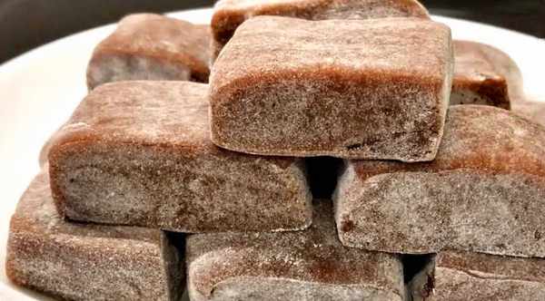 第五步:在切口處也撒上糖粉,防止粘連在一起,放在盤中就可以開吃了,吃不完的放在冰柜裏儲存,一個星期不會壞。