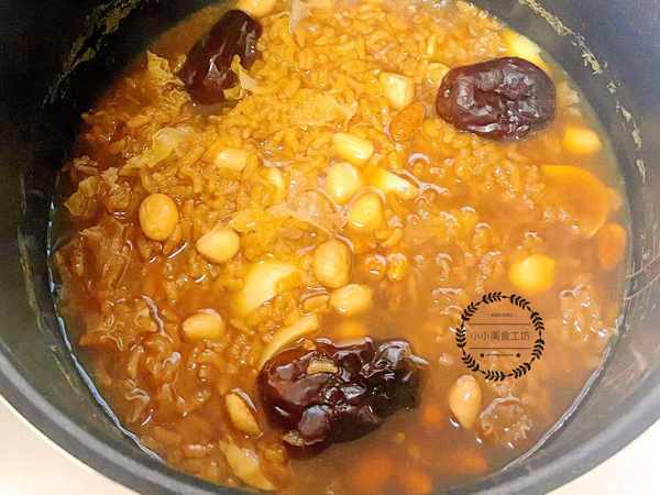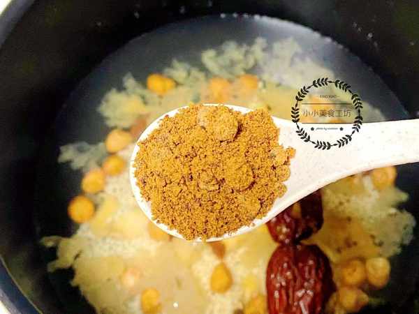 2、將所有食材放入砂鍋中,加入足量的清水,再放入少許紅糖,大火煮至20-30分鐘。