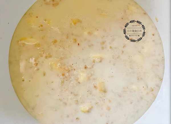 3、當燕麥吸收牛奶,香蕉完全融化後即可關火。